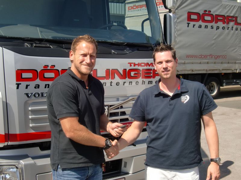 Am heutigen Tag wurde von Herrn Dörflinger Thomas ein neuer LKW der Marke Volvo übernommen. Dies ist der dritte und vorläufig letzte neue Volvo Lastkraftwagen, der im heurigen Jahr ausgeliefert wird. Der Aufbau wurde von der Firma Glinzner in Villach ausgeführt. Bei diesem Fahrzeug wurde erstmals eine funkferngesteuerte Ladebordwand verbaut. Aufgrund der positiven Rückmeldung unseres Fahrers werden wir in Zukunft diese Technik auch bei den nächsten neuen Fahrzeugen einsetzen. Der LKW wurde von der Werbegrafikfirma VARGA im Dörflinger Design beschriftet. Das Fahrzeug wurde persönlich vom VOLVO Verkaufsberater, Herrn Grimm Rainer an Herrn Dörflinger Thomas übergeben.